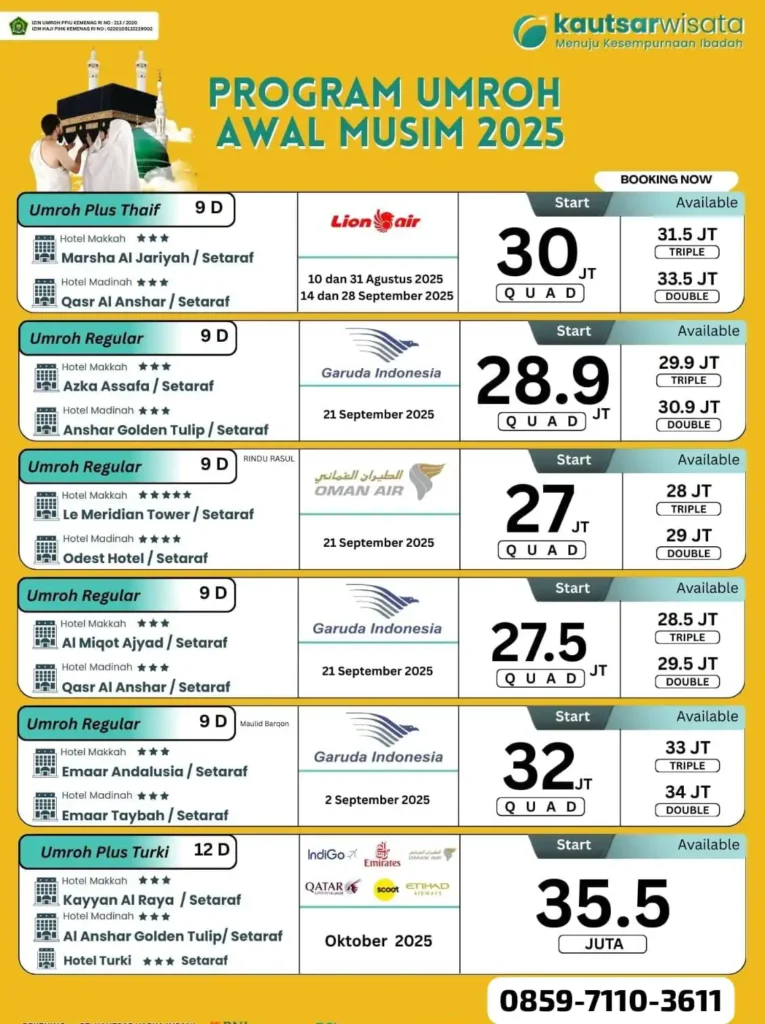 Booking sekarang dan wujudkan perjalanan umroh yang berkualtas bersama Kautsar Wisata